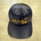 Vintage 80s university of Michigan Wolverines navy yellow crazy cool embroidered trucker hat cap strap back NCAA college sportswear streetwear boho retro Size: one size