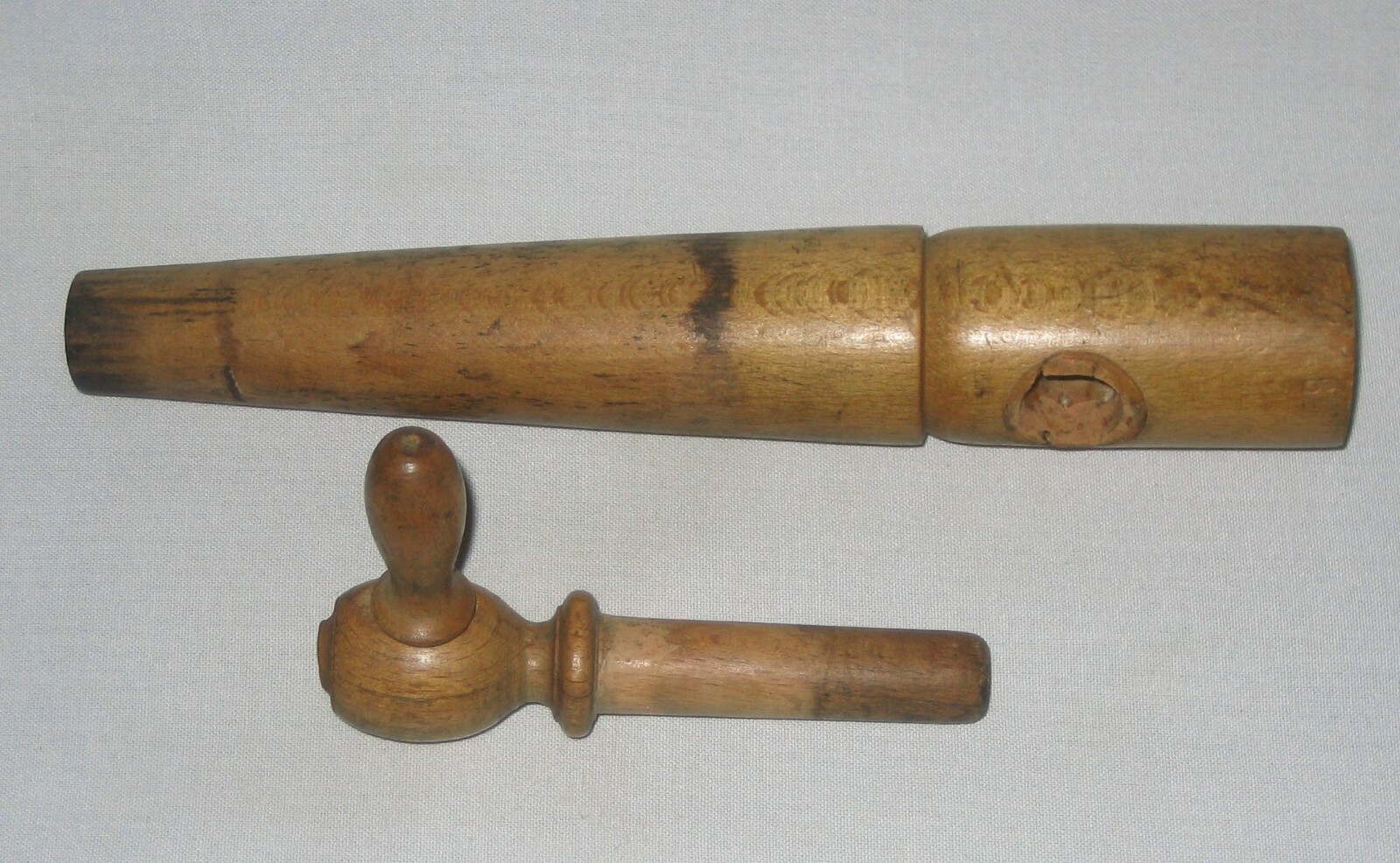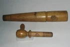 Nice old wooden two piece tap spigot for use with kegs of spirits unknown. Nice patina on tapered body and removable knob. Stamped into the wood at top is 8 1/2 which is the length of the large piece with width at the top of 1 3/8", with the smaller being 4 5/8"and the small handle is 1 5/8". Overall condition is good - showing signs of use as to be expected but without any major damage to the wood. Still a nice study item that could probably be used with a good cleaning. Please refer to pictures and ask any questions prior to bidding. Check out my other listings as I will be happy to combine for shipping any items that end within one hour of each other up to a 15 pound weight limit. Should you purchase multiple items please hold payment until I send a combined, updated invoice. This item will ship wrapped and boxed to protect it from the shipping gorillas across the country. I pack items quite well - as I would want my items packed - to ensure they arrive safely. I will post your feedback asap after I receive yours to complete & close out our transaction. I have been a seller for quite some time and do my best to describe items as accurately as possible to ensure your satisfaction. If for some reason you are inclined to leave negative feedback, please email me so that we may resolve the issue prior to that action.