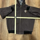Overall good condition, has a really nice color fade, the inside of the hood does have one hand-done repair that looks really awesome and well done. Does have two embroideries on the front as well. Please see photos, thank you! This Vintage Carhartt Aztec Jacket is a stylish and unique piece for men, featuring a hooded design with a wool blanket lining for added warmth. The faded brown color and XL size give it a rugged, retro vibe perfect for the 90s fashion trend. The solid brown canvas outer shell is accented with a full zipper closure and embroidered details, making it a standout piece for any wardrobe. The Western and Aztec themes add a touch of flair to this bomber jacket, making it a must-have for those looking for a vintage-inspired outerwear option.