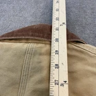 Vintage Carhartt Chore Jacket Mens 44 Tall Brown Blanket Lined Canvas Workwear Condition: Good used condition with overall light to moderate wear. Visible fading, stains, and some scuffs throughout, particularly at pockets, sleeves, and lower front (see photos for details). No holes or structural defects noted. Carhartt logo patch on left chest pocket Brass Carhartt branded buttons Brown corduroy collar Two lower front pockets, two chest pockets (one with button closure, one with Carhartt patch) Shell: 100% Cotton duck canvas Liner: 60% Acrylic, 40% Polyester striped blanket lining Tag size: 44 Tall (Mens), C01 BRN style Made in USA Classic workwear design, durable and warm blanket lining Measurements (approximate): 24" pit to pit, 31" back length Perfect for vintage workwear collectors or everyday rugged wear Era: 90s