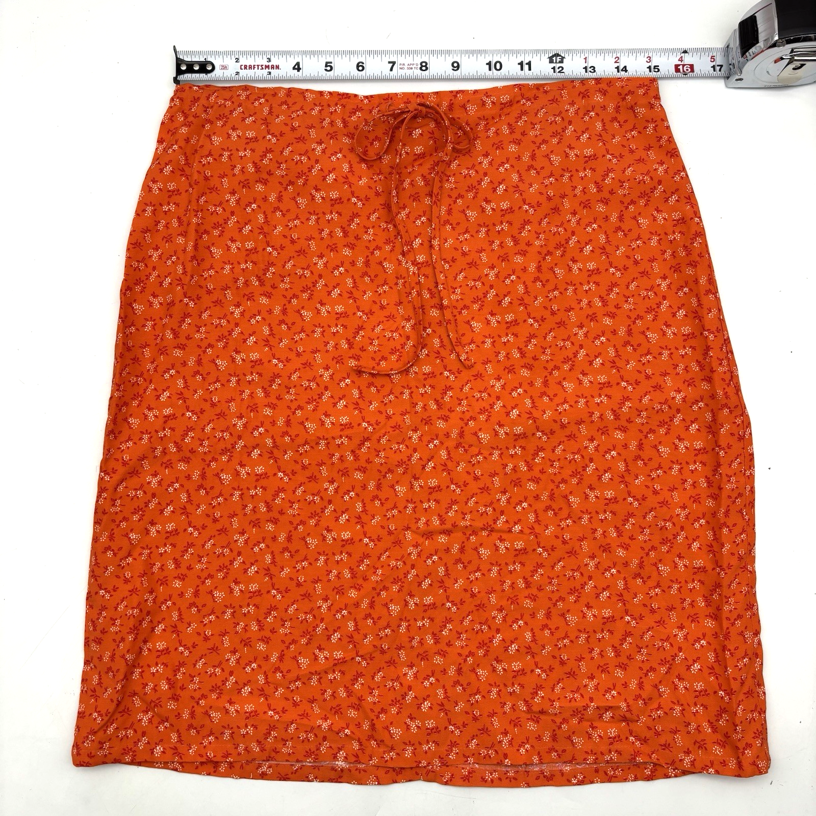 Vintage 90s ESPIRIT Pencil Skirt Made in USA 100% Rayon Bright Orange Knee Length Flat Front No Pockets Drawstring Waist Zip Closure on Back Very lightweight! No stretch! Dry Clean Only Women's Size 7/8 Please refer to measurements below to ensure accurate fit before purchase! 15" waist (30" circumference) 19" hips 20" hem 23" full length from waist to hem Measurements made with garment laying flat. Excellent pre owned condition. Very gently owned, hardly worn. No rips, tears, stains, holes or other notable flaws. Clean and from a smoke free home.
