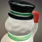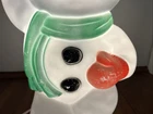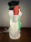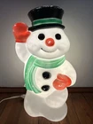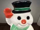 This friendly snowman will put you in the happy spirit of Christmas. If he's on the front porch, he will charm your neighbors. If he's inside on a table top, your guests will want to wave back at him. You might even say he's cute, especially for a snowman. He was made by the famous blow mold company, Empire of Tarboro, North Carolina, and made his debut in the 1990s.Look carefully at the photos, and you will see a bit of paint loss, which isn't unusual for a 30-year-old blow mold. He will come to you with a brand new, never used light cord and bulb. The snowman is about 18 inches tall, 9 inches wide and 7 inches deep. He can be displayed inside or outside. If you have any questions, please message me. Thanks for looking, and good luck!