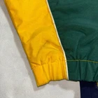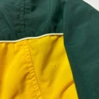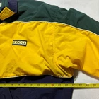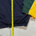 In good condition, no major flaws. Very slight dirt on the end of sleeve cuffs. 27x28" Eye-catching vintage windbreaker from IZOD, featuring a bold color block design in green, yellow, and navy. This full-zip jacket includes a comfortable mesh lining and the IZOD logo patch on the chest. The jacket also has a classic stand-up collar and elasticated cuffs and hem for a snug fit. Perfect for adding a retro touch to your casual wear, this windbreaker is ideal for outdoor activities, sporting events, or simply as a stylish everyday layer.