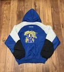 This rare vintage 90s NCAA Kentucky Wildcats Starter puffer winter jacket in size L is a must-have for any fan of the team or retro fashion. The jacket features a solid multicolor design with embroidered logos and zipper accents, showcasing the team's colors and style. Made of durable nylon with polyester insulation, this jacket is perfect for cold weather occasions like travel, parties, or casual outings. With its full zip closure, pockets, and machine washable care instructions, this jacket combines functionality with nostalgic charm for any sports enthusiast. This item is preowned and in good condition for its age. The white on the sleeves has some slight discoloration. Please review pictures before purchasing.