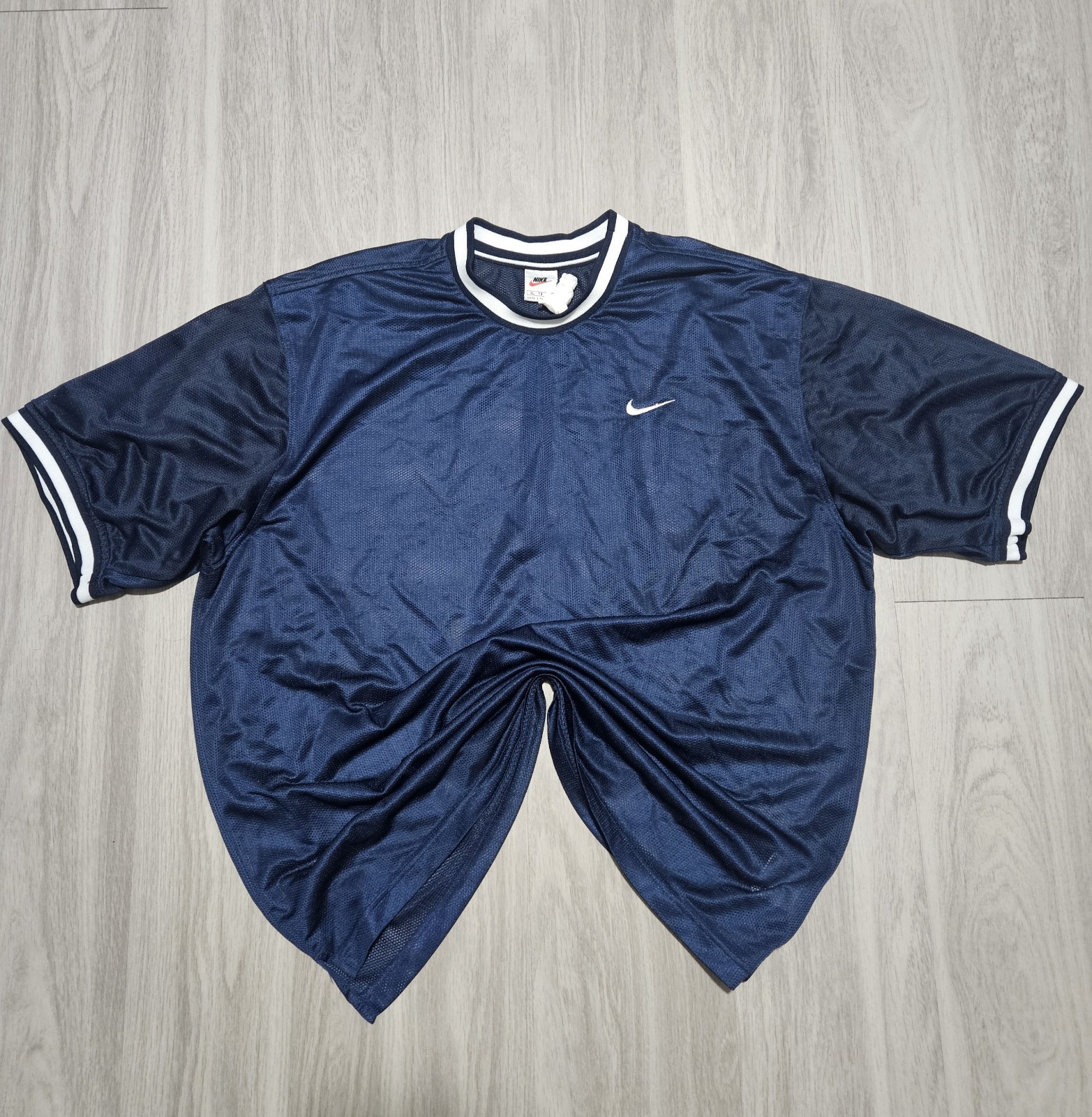 Vintage 90s Nike Navy Blue Mesh Jersey Men’s Size XL Swoosh Tag Retro Step back into the 1990s with this classic vintage Nike mesh jersey. Brand: Nike Era: 1990s (classic white & orange swoosh tag) Color: Navy blue with white trim Material: Lightweight breathable mesh Size: Men’s XL (see measurements for best fit) Details: Embroidered swoosh on chest, striped collar & sleeve trim, retro athletic style Condition: Good vintage condition with normal signs of wear, no major flaws Perfect for fans of vintage Nike, 90s streetwear, and retro sportswear style. Great for layering or rocking a casual throwback fit. Ships fast & folded with care. Comes from a smoke free home. Washed and sanitized. Condition as shown in pictures. Comes as is. No refunds. Measurements provided upon request. Feel free to message with questions or reasonable offers! Thanks for taking a look!