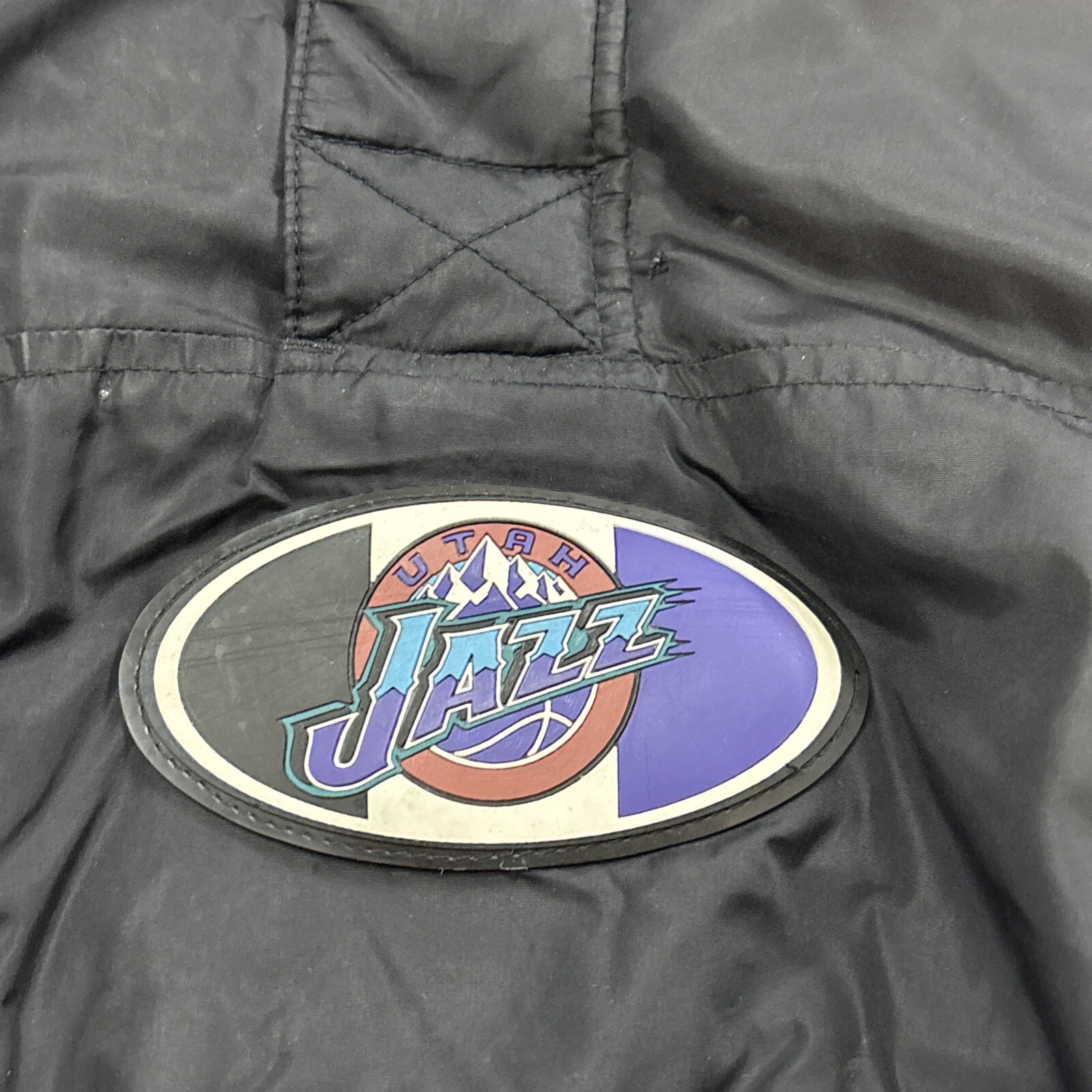 Boys vintage Utah Jazz starter pullover half zip jacket 90s Black Gray Hood. Condition is Used. Shipped with USPS Ground Advantage.