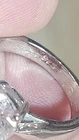 Nice heavy construction simulated diamond (CZ) in an old retro jewelry store box from the 70s. Not sure if this ring has ever been worn. It is in amazing condition. Would be great as a stand-in for your wedding set if you work a lot with your hands and you are worried about losing a diamond at work. Makes a loud "I'm taken" statement. 925 Solid sterling silver, Super bright sparkles uncommon for Simulated diamonds of this age. Size 7. Satisfaction guaranteed with 14 days no questions return policy. Buyer pays return shipping. Authenticity guaranteed forever. Comes with a vintage plastic velvet lined ring box.
