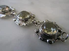 Sterling Silver & Citrine Bracelet Very pretty bracelet set with 6 Round cut Citrine Set in Sterling Silver Made in Scotland In great condition Vintage C1960s Stamped "SILVER SCOTLAND " 18cms Long including clasp - I have a 16cms wrist and it fits me just fine Approx 41gms P2-6V Other items not included I aim to dispatch items within 4 working days from receipt of payment. Shipments within UK are via Royal Mail .Overseas shipments are via Royal Mail International . All items are well packed in bubble wrap & tissue paper etc. I am pleased to be able to say that I have 100 percent positive feedback which has been earned by selling quality items as described and giving good service to my customers around the world. Please ask me any questions about the above, I am always happy to help OUTSIDE UK POSTAGE - I always get proof of postage but if you choose to have it delivered without insurance I will have proof of postage for you. All the items I sell are vintage and have been used. Therefore they are rarely in "mint" condition. Please Study the photos carefully. I try and point out every flaw. If you have any queries or need more information on condition please e-mail me. My ebay sales are done in good faith and refunds are only available where I have misinterpreted any item which is rare but I am only human. Check out my other items !