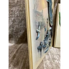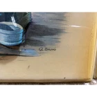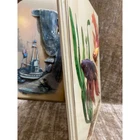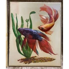 This is a striking pair of vintage dimensional wall art panels, each crafted in high-relief mixed media over printed backgrounds. The larger plaque (approx. 16.5” x 12.5”) is signed by artist A. Bruno and features a serene harbor scene: a fishing boat docked at a wooden pier, a child reading quietly at the water’s edge, gulls in flight, and a billowing fabric draped over a wooden beam—all set against a soft sunset glow with distant bayou homes. The second panel (approx. 14” x 12.5”) features two vivid Siamese fighting fish (betta fish) swimming among lush aquatic plants in a neutral underwater setting. These pieces appear to be mid-century to late 20th century in style and technique, possibly created in the 1970s–1980s. Both artworks are mounted on solid wood backings with hanging wire installed and are ready to display. The style is consistent with mid-century three-dimensional resin art, combining sculptural accents with printed base imagery for a lifelike effect. Ideal for coastal, nautical, or eclectic home décor, these panels offer charm, nostalgia, and texture. Whether displayed together or separately, they evoke a tranquil and artistic ambiance. Condition: Both plaques are in good vintage condition with typical age wear. The harbor scene panel shows minor edge discoloration and light surface scuffs. The betta fish piece has some gloss variation and minor chipping to one corner edge. The backs show age-appropriate wear with intact hanging wires. Please view all photos for full condition details. Sold as-is.