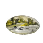 HomeVintage Acrylic on Plaster Oval Landscape painting - Signed by Artist - Cool Art