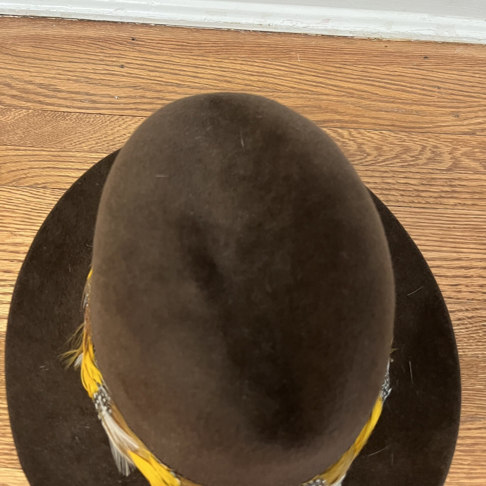 Vtg Fedora Hat Adam Mens Polka Brown Felted Velour Fitted Classic Size 7 w/ Tags.