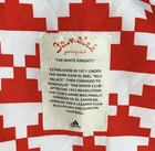 The product is a Vintage Adidas WHITE KNIGHTS football warm-up jacket in size XL. Made from nylon with a white color and zipper accents, this jacket features the iconic Adidas logo and is designed in a windbreaker style. Perfect for men looking for a unique and stylish addition to their wardrobe, this jacket combines retro aesthetics with modern comfort and functionality. It is a must-have for any football enthusiast or collector of vintage sportswear. FAST SHIPPING