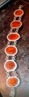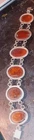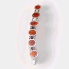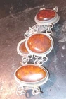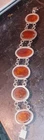 This Vintage Amber Gemstone Sterling Silver 9.25 Oval Fashionable 7" Bracelet features a beautiful oval-shaped amber gemstone as the main stone. The bracelet is crafted from sterling silver with a toggle closure, making it easy to wear and suitable for various occasions such as engagements, weddings, anniversaries, birthdays, and more. The design includes an engraved charm and a traditional oval link chain, adding a touch of elegance to any outfit. Perfect for those who appreciate vintage jewelry with a nature-inspired theme.