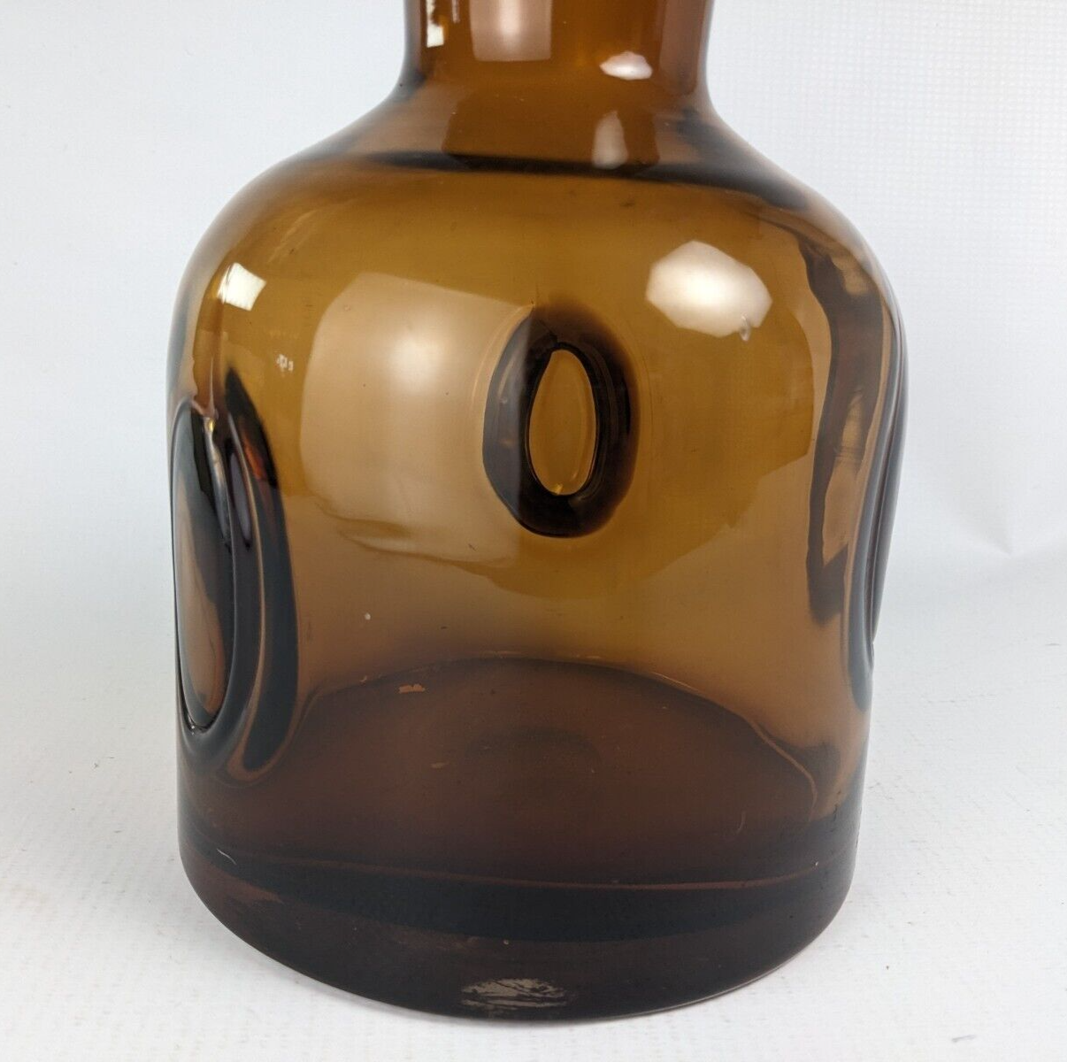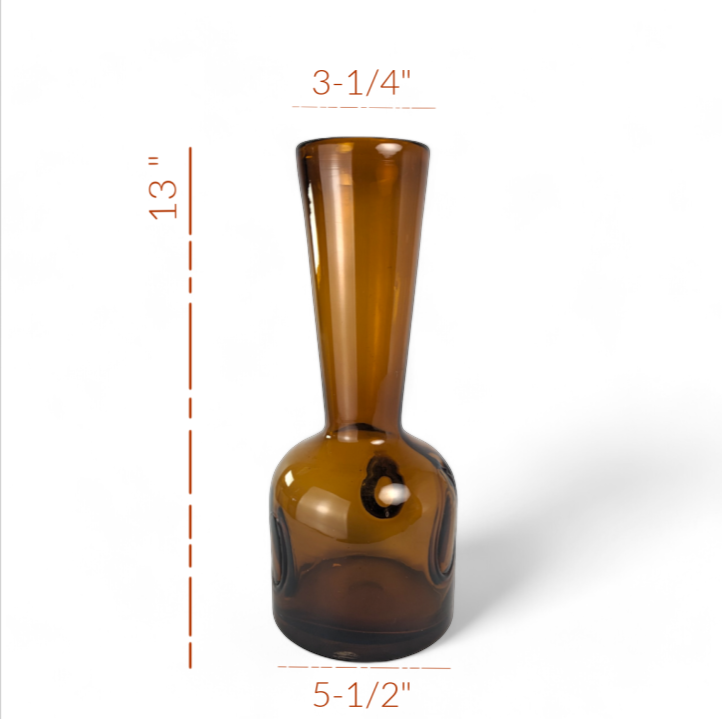 Stunning amber glass vase featuring a rich golden hue and elegant tall form. Its timeless design adds warmth and sophistication to any space—ideal for table centerpieces, floral arrangements, or vintage home décor. The glossy finish captures light beautifully, making it a standout accent in modern, retro, or bohemian interiors. Dimensions: 5.5" base width x 13" height Weight: 3 lbs 7 oz Condition: Excellent vintage condition with no noticeable chips or cracks. The pictures shown accurately depict the item(s) you will be receiving; therefore, they should be considered part of the description. We encourage you to inspect every image. Contact us to ask questions or for specifics regarding this listing.