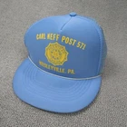 Item is in good pre owned condition. Hat has color disfiguration on the brim and front. Pointed out in the photos with a yardstick. Please see. Fast Shipping. Free, no hassle returns.