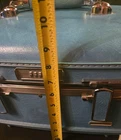 Vintage American Tourister Train Case – Mid-Century Blue Hard Shell Authentic American Tourister vintage train case in classic mid-century blue. These iconic hard-shell cases are known for their durability and timeless design and remain highly collectible today. Features sturdy chrome-tone hardware, solid carry handle, and original interior with elastic storage loops—perfect for use as a cosmetic case, vanity storage, décor, or display. Item Details • Brand: American Tourister • Era: Mid-Century (1950s–1960s) • Color: Blue • Material: Hard shell with metal frame • Interior: Original patterned lining with elastic holders • Closure: Metal clasp (no key noted) Measurements (approximate) • Length: ~13–14" • Height: ~9" • Depth: ~7–8" (See photos for tape-measured reference) Condition Good vintage condition with expected wear from age and use: • Surface scuffs and scratches • Minor marks and wear to exterior • Interior intact with light discoloration • Hardware secure and functional No cracks or structural damage noted. Please review photos carefully as they are part of the description.