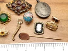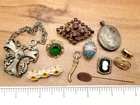 10 piece lot of true Victorian to Art Deco era crafters jewelry. Most pieces broken, damaged, or very worn. Best intended for crafts, jewelry making, or repurpose. Not recommended for reselling. Please look closely at photos and ask questions if unsure. No solid gold or precious metals beyond maybe a small piece of sterling and/or gold filled. Thanks for looking! All items sold as-is Most offers considered. I will combine shipping!