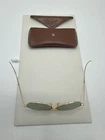 Vintage Aviator Sunglasses. I couldn’t find any markings on the sunglasses themselves. They show signs of wear, scratches, ect. It looks like the temples have been shortened. The case shows signs of wear as well. The top of the case has come apart and there’s lots of cracks in the leather, the case is pretty stiff. The case also says Air Force 409. Overall they display nicely and would make a great addition to any collection. If you would like more photos or have any questions please let me know. Will only ship within the U.S. lower 48 states