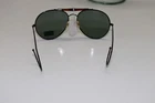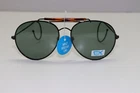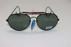 Vintage Aviator sunglasses black frame grey tint round ear pieces E193 Black colored metal frames/ grey tint 100% UV protection. impact resistant clear lenses. rounded earpieces are designed for pilots to prevent glasses from falling off. They are great when you are bending over and moving because they don't fall off your face. Temple Length 140mm overall frame width 135mm frame height 56mm lens width 63mm distance between lenses at bridge width 15mm Track Page Views With Auctiva's FREE Counter