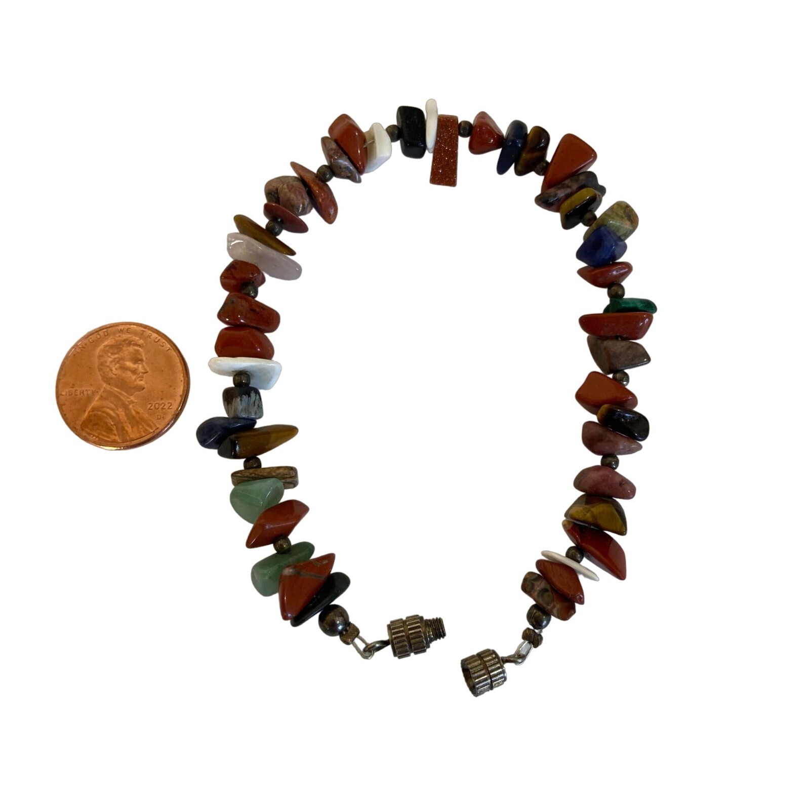 Bracelet Vintage Semi Precious Stones Earth Tone BOHO Bohemian 8" Some of the stones are: Tigers eye Leopard Jasper Agate Tourmaline Blue Jasper and more Size: Womens 8" Condition: Pre-Owned