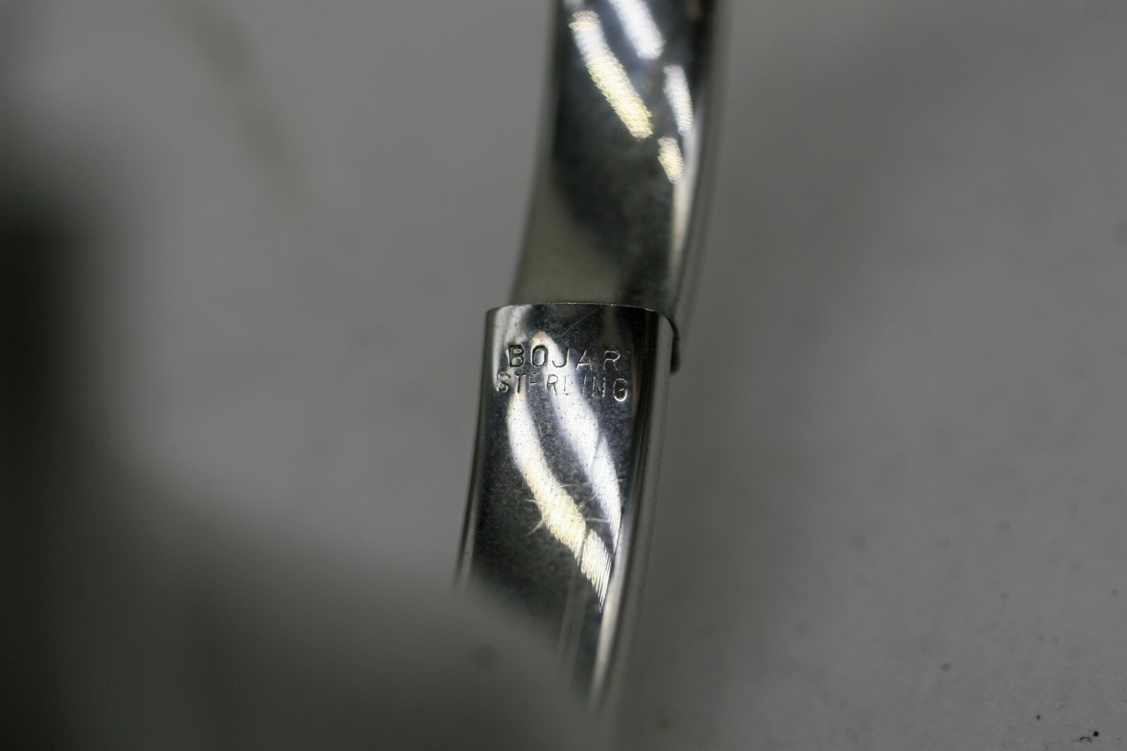 Vintage Bangle Bracelet / BOJAR / STERLING SILVER / ENGRAVED FLORAL FRONT Signed ON THE ONSIDE NEAR HINDGE BUT IS HARD TO PHOTOGRAPH 7" PUSH CLASP WITH SLIDE VERY GOOD CONDITION