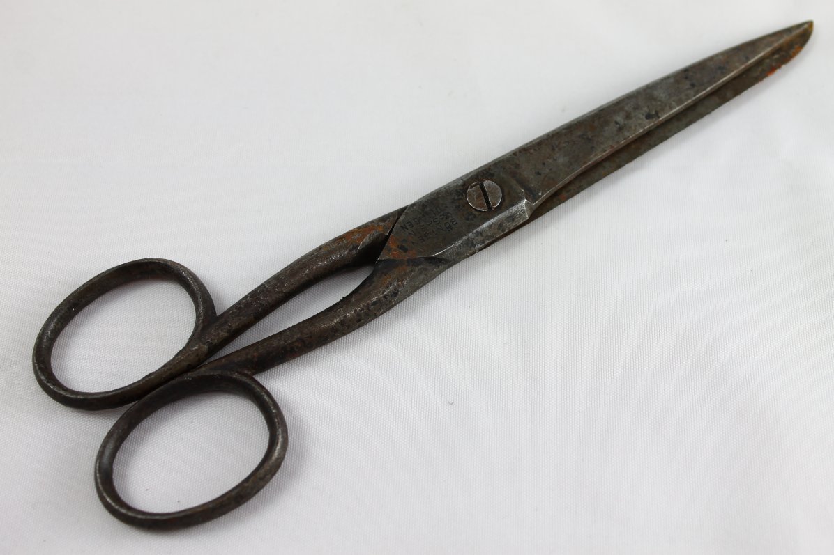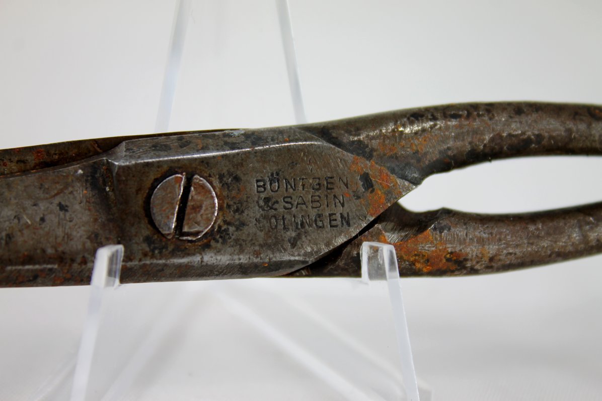 Dear Buyers, up for auction is this antique German cutting scissors BONTGEN & SABIN SOLINGEN circa 1930's. The scissors are marked " BONTGEN & SABIN SOLINGEN ". The scissors are sharp and cut as well. They have some scratches and age related dents, please look at the pictures for more details. Measures: Length 175 mm , Width 55 mm. Rare And Collectable! Payment Policy Only PayPal is Accepted 3 Days Payment is required after the Winning Bid Item will be shipped immediately on the same or next business day of receiving clear payment Shipping I Ship Only With Registered Mail (Tracking Number) I Ship WorldWide Paypal Confirmed Addresses Only Items Will Be Shipped Same Day Of Receiving Full Payment Tracking Number Will Be Provided