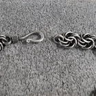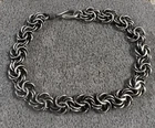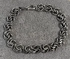 Authentic sterling silver Bali style modified byzantine link bracelet. This vintage bracelet measures a versatile eight and one-half inch in length from end to end by close to 3/8 inches in width. Completing the bright finished bracelet is a traditional Bali style wire hook clasp. Stamped on the clasp, and a bit hard to see and photograph, is "925", denoting sterling silver in fineness. This stylish bracelet has been lightly cleaned but not polished. Shows some age-appropriate wear but overall, nice estate condition. Weighs a very solid but comfortable 23.6 grams. This classic byzantine link bracelet would make a wonderful gift or self-purchase. Looks great when worn and will soon become a go to favorite. No international shipping or shipping to a non-confirmed eBay address.