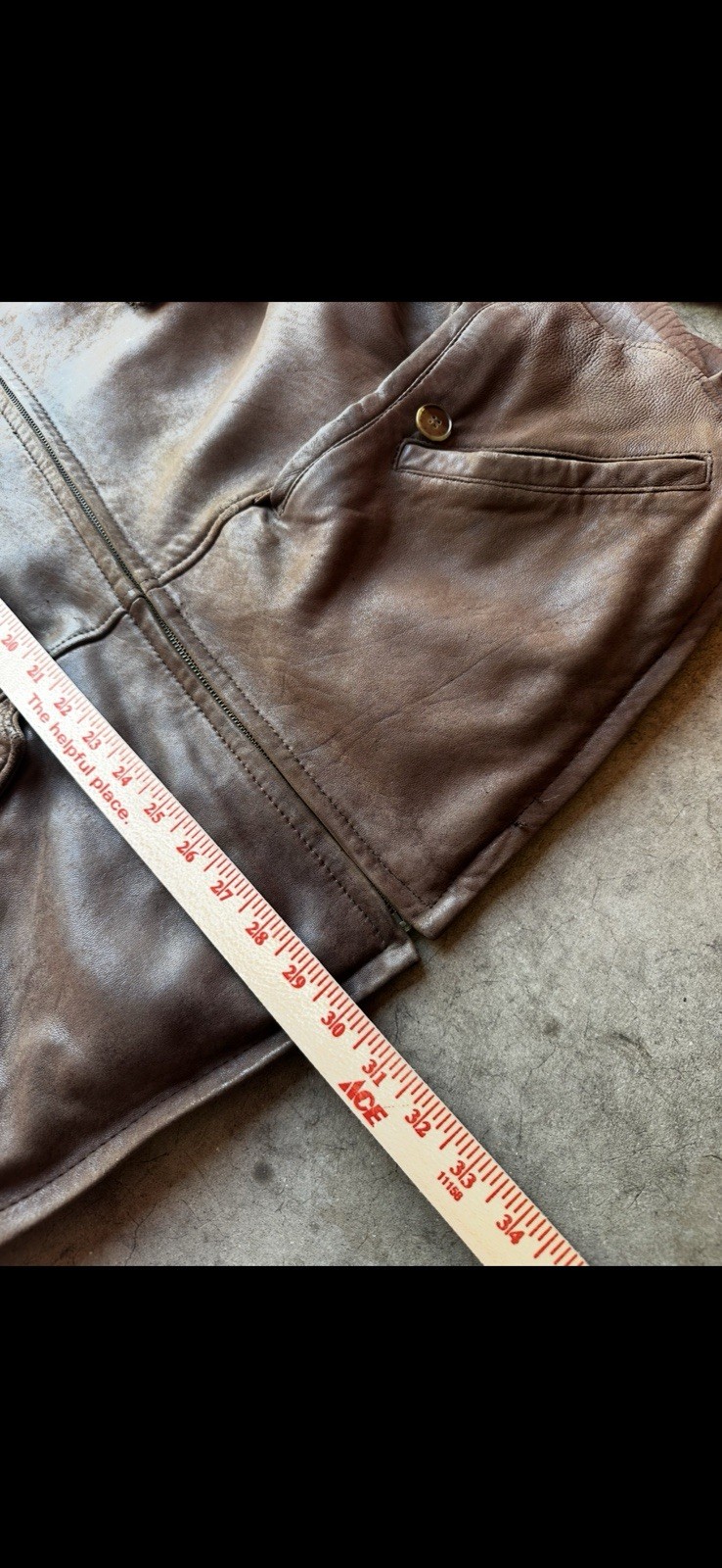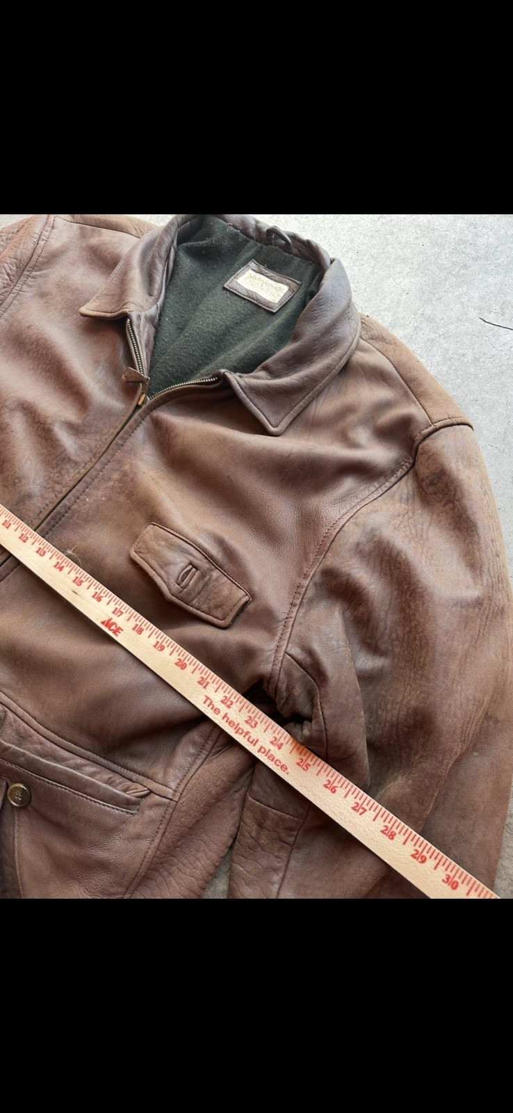 • Classic brown genuine leather jacket • Full zip closure with sturdy metal Talon zipper • Warm fleece lining for comfort and insulation • Multiple front flap and hand pockets for utility • Distressed patina adds vintage character Hashtags: #vintageleather #brownjacket #heavyduty #fleecejacket #distressedleather