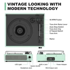 Record Player for Vinyl with Speakers Turntable Vinyl Records Belt-Driven Turntables 3-Speed 3 Size Wireless Bluetooth Headphone AUX-in RCA Line LP Vinyl Players Auto Stop New Sleek Pale Green NEW SLEEK LP RECORD PLAYER - Sleek but old school style, Easy to use for beginner, simple setup and operation. Great ideal for vinyl lovers. Three-speed Turntable (33, 45, 78 RPM) plays all of your 7" 10" 12" vinyl records. Easily play all your record collections BLUETOOTH TURNTABLE WITH SPEAKERS - Built-in Bluetooth receiver & stereo speakers, not only can play vinyl records to experience the retro-style music and atmosphere, but you can also play all your favorite music at any time via a Wireless connection, playing music from mobile phones or other audio devices BELT-DRIVEN ANTI-VIBRATION SYSTEM - The turntable base is equipped with a spring and belt-driven design to provide shock absorption and improve sound quality. An easily removable dust cover protects your vinyl records from damage. You can shut the cover shields and keep the dust out. And the beautiful textured exterior are a perfect fit for any environment PORTABLE VINYL PLAYER AND VERSATILE - Dynamic full range stereo speaker provide sound for daily leisure listening. Don't worry if you don't have extra speakers. It creates a warm atmosphere when family gatherings. When you are alone, it can help you relax. Even if you don't use it, it can be one of the home's premium decorations. As a gift, it also allows the recipient to feel your heart ALL-IN-ONE VINYL RECORD PLAYER - Built in stereo speakers,with Bluetooth wireless technology,elegantly listen to the music from your smart phone.Use Aux cable input to directly play the music. Or enjoy your time with headphone. For better or louder sound, connect external speaker via RCA cable