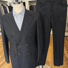 Size: 38r USA slim fit with 24-inch arm length and a jacket length of 30 inches. Pants: 31x30 drop 7 **Side tabs** For complete measurements, see photos #2 and #3 To see exactly how we measured, see the last series of photos. Extra fabric for adjustments: Waist: 3. inches Inseam: 3 inches Arms: 1 inch Color and fabric: charcoal with alternating blue and red stripes and white shadow stripes Condition: excellent 1960s condition. No real flaws were found. No holes. No snags. No smells. No stains. Full canvas, side tabs, drop 7, light shoulder pads, single vent, medium weight, wool, bespoke 1960s Return policy: We offer free shipping and no returns. We can not afford to offer both in the highest return category on eBay. It becomes very expensive to mail out items for free for people to try on if they are not confident in checking the measurements in picture #2. If you prefer to have the ability to return the item and pay $12.95 shipping, please send us a message, and we can change the listing format to offer returns. The $12.95 shipping cost would break us out even in the case you needed to return the item. You must contact us before purchasing as some of our items are on consignment and we will need to get the owners approval before proceeding. We ship the next business day after the payment is made. A discounted, expedited shipping option is available at checkout. If you need help figuring out how to buy a blazer or suit on ebay that actually fits you properly. There are some fantastic videos on You tub e