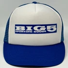 Big 5 Sporting Goods Trucker Hat Vintage 90s Blue Five Panel A-Frame Mesh Snapback Baseball Cap Will be shipped in a box. Condition: Has minor image cracking and fading of the mesh back. No other flaws noticed. Has been cleaned and sanitized. See photos.