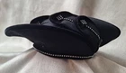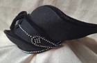 High style chapeau! This vintage black velvet hat with rhinestones by Deborah of New York is a luxurious and elegant piece perfect for a special occasion. Dating back to the 1950s, this original Victorian-style hat features intricate rhinestone embellishments that add a touch of glamour. The medium size and classic black color make it a versatile accessory that can complement various outfits, while the high-quality velvet material exudes a timeless charm. Perfect for vintage enthusiasts looking to add a sophisticated touch to their wardrobe. High style. 20 inch circumference around the headband area. Good pre-owned condition. 1 minor flaw on wire of brim. SOLD AS IS. USPS SHIPPING