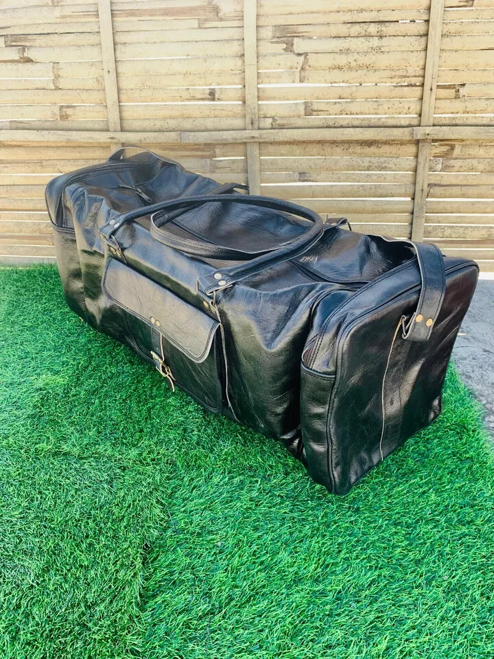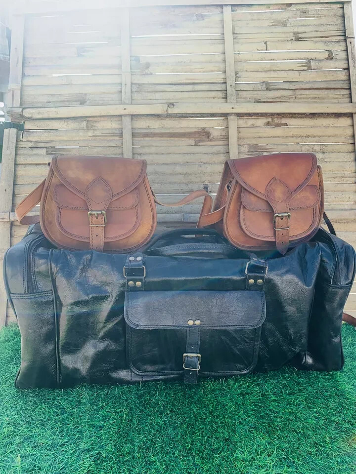 Description QUALITY LEATHER BAG Each bag is individually made using goat leather by experienced crafts people .The bag gets better and better with the time as the leather softens and deep-ens in color. The tonality color of each bag might vary in accordance with the low and high temperatures from the heart of The Thar desert.The leather does not receive any chemical treatment. On the bags a special vegetable oil is applied to give more tonality to the dominant brown (light and dark) color of the bag also making it more resistant to the water.Each bag has its charm and style and a very special earthy smell that will assure you it’s real leather.Its lightness, flexibility and durability will not make you regret your purchase. Features SIZE: 24 X 9 X 9 inch (See the picture for more detail) Strong, light-weight goat leather, tanned without the use of chemicals Leather softens and darkens with use Color and texture of the leather varies Natural real leather smell, just like a luxury car or lounge suite Solid brass buckles and fixtures - will last for years Has a wonderful natural look, and feel Each bag is uniquely individual due to slight color and marking variations on natural leather Brand New Handmade Leather Bag without tag.