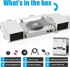 About this item 【Record Player with Dual Speakers】- Equipped with a pair of separated speakers and record player, easy to set up and gives you full and dynamic vinyl audio sound via the stereo speakers. RCA output allows connection to your own externally-powered speakers. It is a complete vinyl playback system for many occasions, bringing a better music experience to your living room, apartment or your party. 【3 Speeds Turntable with Speakers】Removable protective dust cover and auto-stop function supports all 7", 10"& 12" records with switchable 33⅓ 45, 78 RPM speed settings, it provides you with the flexibility to enjoy all kinds of vinyl records. 【Wireless Bluetooth Music Input】 - Wireless Turntable with speaker lets you can play analogue vinyl records or stream digital music wirelessly from your phone, listen to the old-school vibe of the wooden speaker housings and turntable base. 【USB to MP3 Recording, AUX, Headphone Jack】- Easily convert vinyl records into digital files by connecting to PC, Headphone jack, AUX line-in port and USB-PC cable included. 【Retro Vinyl Record Player】-- Record player with speakers is powerful enough to a fill a large room, it also features a vintage mid-century aesthetic, adding a touch of retro vibe to any room. Two bookshelf speakers not only works as capable music station but offers multiple placement options as turntable base or record shelf.