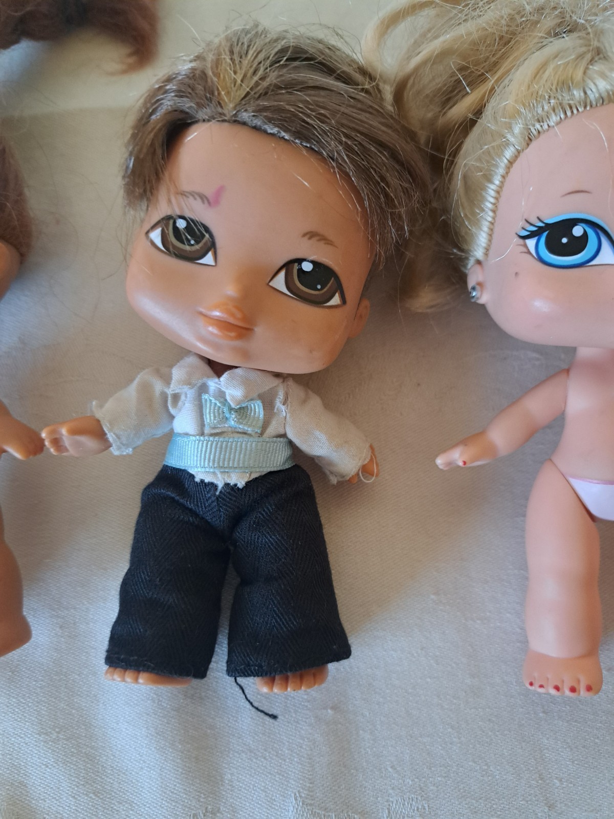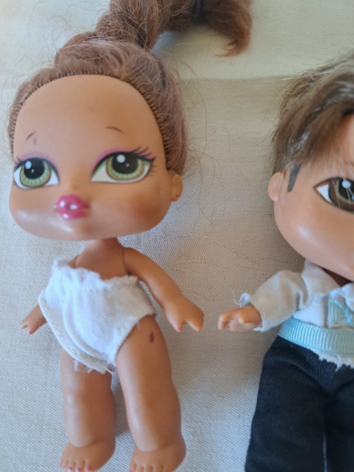 Vintage Bratz Babies 3 Dolls Lot. 2 girls, 1 boy. Blond blue eye, brown hair brown eyes, girls don't have clothes. Boy has short hair, brown eyes, and clothes. 2004 MGA, 5 inches.