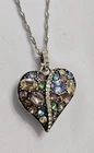 The Vintage Brighton Trust Your Journey Multi Color Rhinestone Heart Pendant is a stylish jewelry piece that features a heart-shaped design adorned with colorful rhinestones. The Brighton brand ensures quality and craftsmanship, making this piece a unique and eye-catching addition to any jewelry collection.