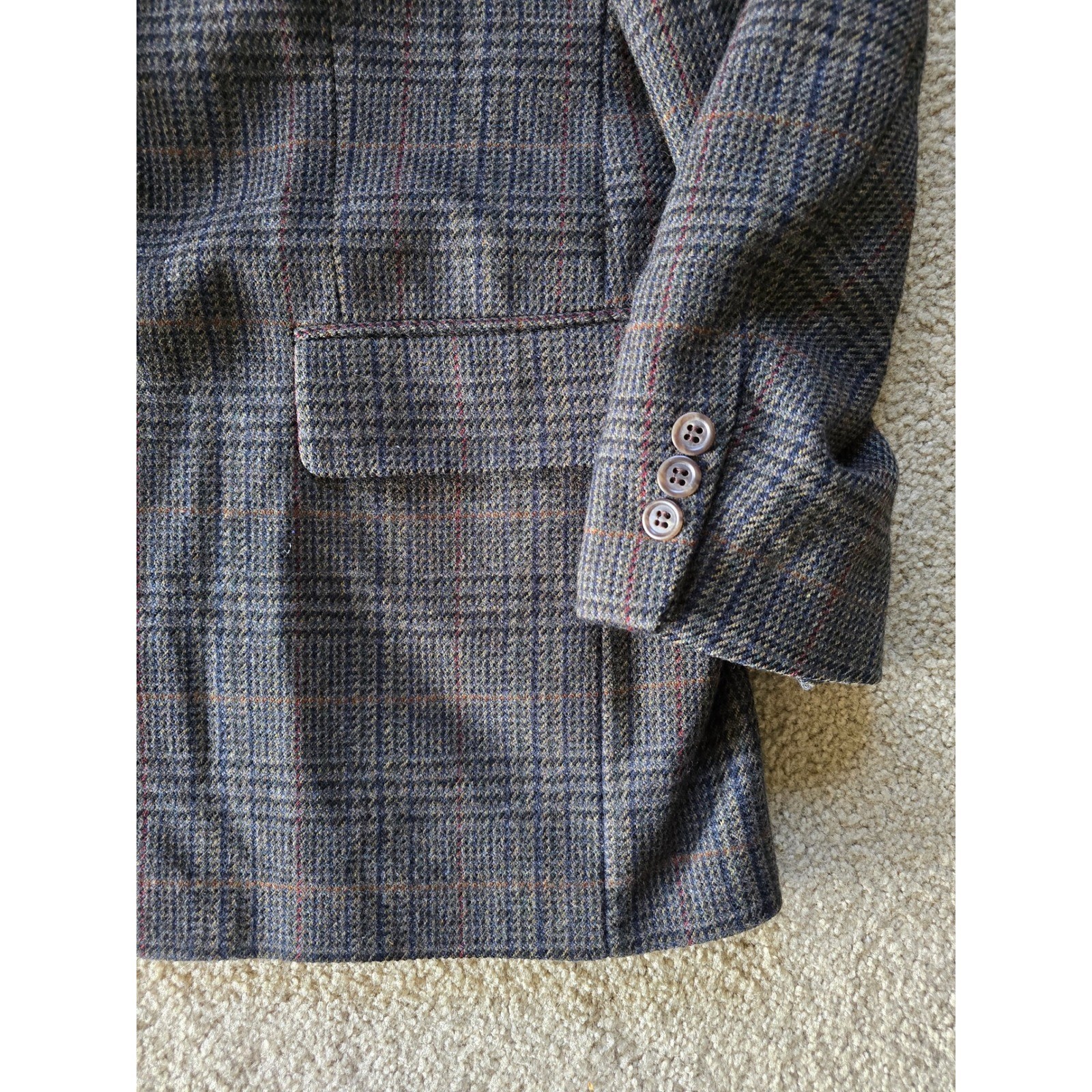 A classic Brooks Brothers sport coat in a versatile brown, gray, blue, red plaid. This refined blazer features a two-button closure, notched lapels, and functional flap pockets, offering a timeless silhouette. The interior is lined for comfort and a smooth finish, with a branded label proudly displayed. The jacket is suitable for business casual events, a sophisticated dinner out, or smart everyday wear. Vintage Union Made in the U.S.A. Measurements: • Pit to Pit 23" • Length 32" • Sleeve Length 24" Keywords: sport coat, blazer, plaid, wool blend, menswear, business casual, classic, tailored, outerwear, smart casual, traditional, sophisticated, workwear, professor, vintage blazer, union made in usa