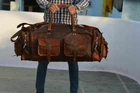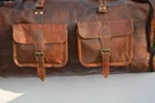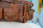 This is classically designed, authentically styled, vintage look, hand crafted genuine long-lasting goat leather duffel, gym bag. The inner lining is made from sturdy durable canvas. Since it is being handmade, each bag is unique! Each bag is individually crafted. The more is used, the softer, flexible and durable it becomes. What is more important – looks better with age, regular use as the leather softens and deepens in color. Every bag is double stitched and trimmed to ensure durability, strength and the ability to withstand the test of time Size/Dimension Length – 30” Height – 12” Width – 11” Features: - 2 Outer Side Zipper Pockets - 1 front small pocket/pouch. - Brass metal fittings. Materials utilized 1) Processed High Quality Goat Leather 2) Naturally Sun Tanned leather 3) Oil to give the finished and antique look which gives a rustic and vintage look to the bag. Production method Special high quality is produced by naturally sun tanning the processed goat leather. Leather is then oiled to provide the rustic , vintage and antique look.