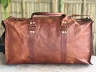 Description QUALITY LEATHER BAG Each bag is individually made using goat leather by experienced crafts people .The bag gets better and better with the time as the leather softens and deep-ens in color. The tonality color of each bag might vary in accordance with the low and high temperatures from the heart of The Thar desert.The leather does not receive any chemical treatment. On the bags a special vegetable oil is applied to give more tonality to the dominant brown (light and dark) color of the bag also making it more resistant to the water.Each bag has its charm and style and a very special earthy smell that will assure you it’s real leather.Its lightness, flexibility and durability will not make you regret your purchase. Features SIZE: 24 X 9 X 9 inch (See the picture for more detail) Strong, light-weight goat leather, tanned without the use of chemicals Leather softens and darkens with use Color and texture of the leather varies Natural real leather smell, just like a luxury car or lounge suite Solid brass buckles and fixtures - will last for years Has a wonderful natural look, and feel Each bag is uniquely individual due to slight color and marking variations on natural leather Brand New Handmade Leather Bag without tag.