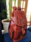 Features Green canvas fabric Internal 1 big compartment 4 small pockets ADJUSTABLE BACK SHOULDER STRIP (See the picture for more detail) Strong, light-weight goat leather, tanned without the use of chemicals Leather softens and darkens with use Color and texture of the leather varies Natural real leather smell, just like a luxury car or lounge suite Solid brass buckles and fixtures - will last for years Has a wonderful natural look, and feel Each bag is uniquely individual due to slight color and marking variations on natural leather Brand New Handmade Leather Bag without tag