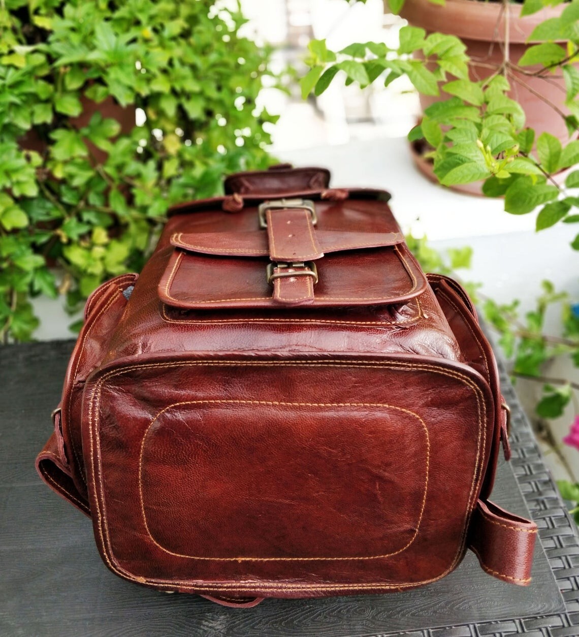 vintage leather messenger bag, Real leather bag, handmade satchel shoulder bag Item Description:- Material- Real Goat hide ( sustained ) Size- 16"(L), 8"(W) Made from 100% Genuine, Strong, lightweight, durable goat leather, tanned without the use of chemicals Adjustable back shoulder strap A protective over flap Big main compartments for clothing /travel and sports gear etc. Four small pockets for cash /mobile 16" inch in size, perfectly suited for a carry all or as an overnight backpack bag Inside green canvas Specially ample with wide straps and lots of pockets secured with metal buckles Payment Policy Only PayPal is Accepted Item will be shipped immediately on the same or next business day of receiving full payment Shipping Policy Paypal Confirmed Address Only, phone number is must to be provided. Items Will be Shipped by FEDEX , Next Business day of receiving full payment Tracking Number will be provided Item is described as SYNTH on the packet but please dont confuse because this is doing to avoid you to pay additional custom charges in your country. Returns Policy This Item is Brand New Actual Images of item are shown here RETURNS are Accepted for this Listing Unless Item arrive damaged Guarantee We provide 100% original leather products. Our Each item is made with love and passion, you will definitely falling in love with this bag. Our item is comparatively cheaper and well made because it comes from manufacturers. There is no middleman between you and us. About Us The Leather we use are made from fine quality of hides available. We are in favour of environmental sustainability. We are completely against of using the hide of protected or wild animals. Green world Clean world.