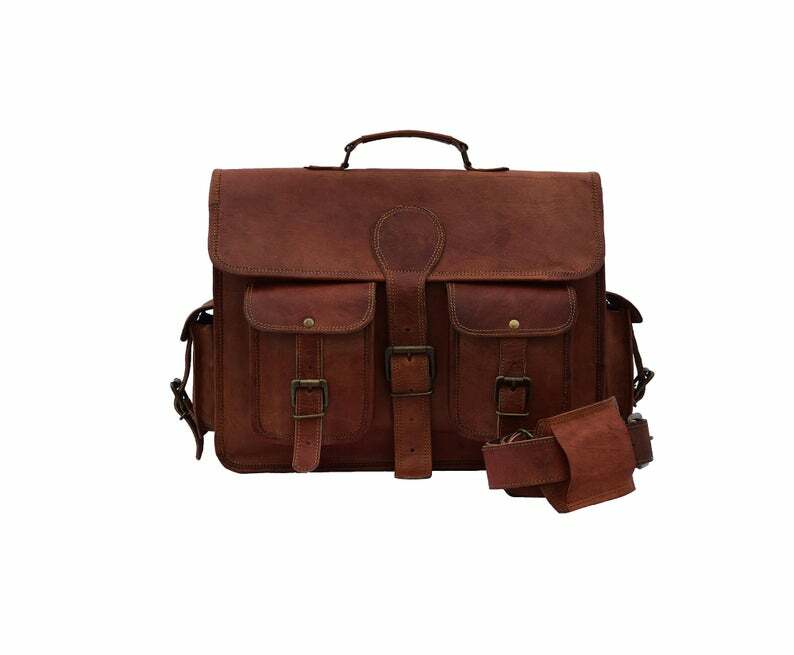 Men's Leather Messenger Satchel Shoulder Briefcase Business Bag - Leather Bags Best Product in Leather Bags Descriptions: 100% genuine goat leather messenger bag with a durable inner lining made of canvas. Designed to carry 15" laptops, tab, documents or other personal belongings, etc. A genuine hand made product using Natural leather. Natural oils and light have been used to obtain the style of the leather - chemical free! This bag features a wonderful unique and vintage look, designed to carry mini laptops, tab, documents, personal belongings etc. Perfect for the office, school or as a gift! Specifications: Made from 100% genuine, strong, lightweight, durable goat leather, tanned without the use of chemicals Adjustable shoulder strap, half flap bag with strap lock & 2 small front pocket. big inner compartment for carrying files, mini laptop's, tab's etc. 2 zipper compartments for important documents/paperwork etc. Inner canvas lining Vintage leather wash Leather softens and darkens with use Handmade in India by experienced craftspeople Item Description:- Material- Real Goat hide ( sustained ) 2 Front pockets, handle on top. Total 4 compartments inside with green color strong canvas lining. 54" long adjustable shoulder broad strap. Real Brass metal accessories used in this Bag. Made by professional and experienced artisans from Rajasthan. Treated by natural ingredients. Natural leather smell will go away within few days from the usage of this bag. Eco friendly and weather resistant. RETURN POLICY Please provide your telephone number as well, so that the post office can contact you when your item arrives, or the item will be sent back to us. We will not be able to resend the item in that case so please make sure to provide your contact number. • In case of return of the goods, buyer has to borne the shipping charges. • Customs duties and other duties levies in destination country are responsibility of the customer. • We will exchange the item if returned to us within 14 days of original packing. • The item should not be used. • No alterations Must be Done to Item. Otherwise We won't take it Back • Buyer Must Inform within Two days after Getting the product about any Issues with the Item. TERMS & CONDITIONS Customers are require to provide full & accurate information at the time of order. No warranty. Dry cleaning only. We use standard shipping carriers for national & international shipping. Accessories & Stitching Pieces shown in the image are just for photography purpose. There may be color variation due to difference in resolution of the photo & the actual color. Please clarify all your doubts before buying. In case the item is out of stock your entire amount will be refunded via the same way the payment was made. Offer price is for per piece. About Us We manufacture ethically designed leather bags of great quality. The most important thing, these bags are not factory made, all of our bags are locally handcrafted in countries. We offers customized designing and wholesale prices for bulk order. We welcomes you to come and visit our manufacturing unit. For more details, please write to us. Feedback • Please do not leave a negative feedback as a way to communicate. Any rating given to a seller can neither be changed nor modified. So better communicate for faster resolution to any disputes. • If you have any concerns regarding your purchase, please contact us via phone or mail, we assure you that a satisfactory resolution will be reached. • Please help us maintain a 5 Star DSR rating in all 4 rating categories, if you feel otherwise, please let us know how we can score a perfect rating from you before you rate us.