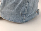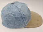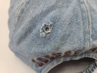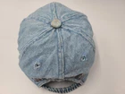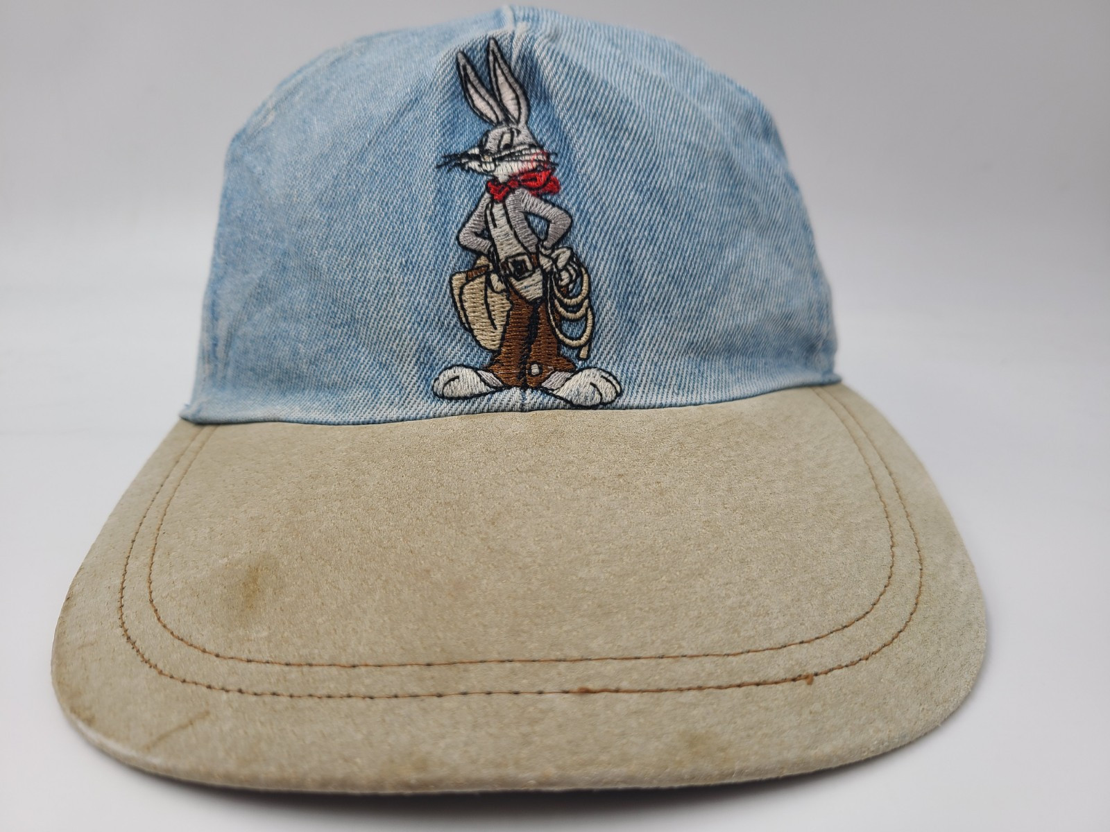 There is no size tag, but it seems best suited for M-L sized heads. Has tears near the back as seen in photos. Has stains/discoloration on the brim, sides, back, top, and underneath the brim. Also has writing underneath the hat and rusting underneath the button. Vintage Bugs Bunny Looney Tunes Denim Distressed Stretch Fit (Seems M-L) Hat Cap. EACH ADDITIONAL HAT PURCHASED IS ONLY $1 ADDED SHIPPING!