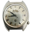 Vintage Bulova Accutron Men's Tuning Fork Wristwatch 218 1 USA Steelfor Parts Product Description Item: Wristwatch Brand: Bulova Accutron Movement: Tuning Fork Case Material: Steel Country: USA Gender: Men's Caliber: 218 1 Product Measurements Lug Width: 18mm Lug to Lug: 40mm Thickness: 10.5 mm Product Condition Overall Condition: Poor, overall condition for its age. Functions: Not running as it is for parts Case: There are scratches on the case. Crystal: The crystal is cracked. Dial: The dial has discoloration. Additional Information: It was tested and did not run.