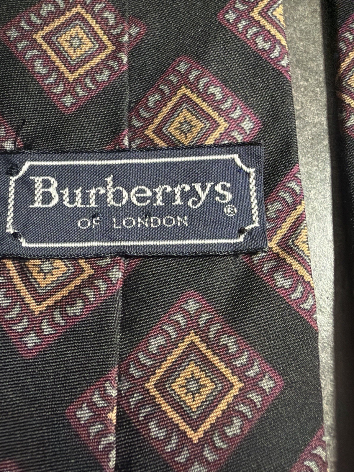 The Vintage Burberry London Silk Tie is a designer accessory for men, crafted from luxurious silk material in a classic black and red color scheme. Featuring a geometric medallion pattern, this tie exudes sophistication and style, perfect for adding a touch of elegance to any formal outfit. Made by the prestigious Burberry London brand, this tie is a timeless piece that will elevate your wardrobe with its high-quality craftsmanship and distinctive design.