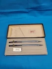 This vintage CROSS Chrome 3501 Pen Pencil Set features a classic design with a sleek black finish. The set includes a pen and pencil, both of which are crafted with high-quality materials. The brand name "Cross" is synonymous with quality, and this set is no exception. The set is perfect for collectors or anyone who appreciates a classic design. It's also a great gift for anyone who loves writing or art. With its timeless design, this set is sure to become a staple in any collection. I believe these are new in box, but since I'm not sure, I listed as used! Please see images for condition details!