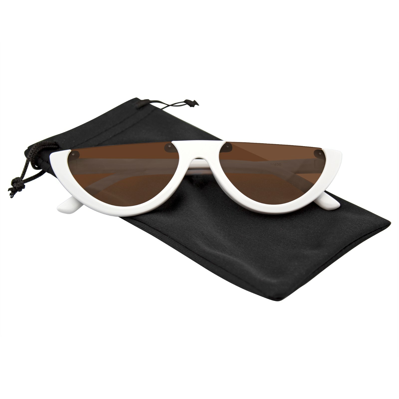 Womens Sunglasses Retro Half Frame Fat Cut Lens Sunglasses Cat Eye Chic and distinct these cat eye sunglasses feature a half frame and half moon lenses. Half frame cat eye sunglasses are perfectly unique, for that fashion bougie look! Indie style women's cat eye sunglasses are super edgy and sassy. This item features metal hinges, in-frame nose piece and polycarbonate 100% UV high impact-resistant protected lenses. Includes a FREE soft pouch. Make a Statement in these shades! SPECS: USA: ANSI Z80.3 EU: CE Certified AU: Category 3; 8-17% VLT Drop Ball Certified: Military Standard FDA Registration Number: 3013407178 Ultraviolet Light (UV) Protection - UV 400 both UVA and UVB radiation. Blocking light rays as small as 400 nanometers. This means that anywhere from 99 to 100 percent of the sun's harmful radiation is kept away from the eyes. Visible Light Transmission (VLT) - This measures how much light your sunglass lens lets through. VLT of 1% means very dark lenses and a VLT of 100% means very light lenses. Lens Width: 58mm Nose Bridge: 18mm Lens Height: 30mm Total Width: 147mm Arms Length: 140mm About Emblem Eyewear: As an ever-evolving retailer and promoter of online fashion eyewear, we aim to provide the latest styles and trends in sunglasses; including designer inspired, trendy, retro and mirrored sunglasses. Shop Emblem Eyewear! Customer Service: We are committed to providing exceptional customer service to meet all of your needs. All of your questions will be answered within 24 hours, Monday Sunday excluding Major US Holidays. We ask that before you open a case or leave feedback you come to us so we can rectify the situation and make you happy. Money Back Guarantee: We offer a full 60 day 100% customer satisfaction money back guarantee for all our products sold at Emblem Eyewear. Shop with confidence! Free Shipping: We offer free shipping on all orders within the U.S. Packages are processed and shipped within 24 hours after payment is completed. Tracking information is available for all U.S and International orders. All items are shipped with a brown, durable box to ensure it arrives safely. International Shipping: Shipping can take up to 30 days depending on Customs. Shipments are sent USPS First Class mail. There may be additional Customs charges in your country. Please check them before ordering. If you do not see your country listed, we currently cannot ship to you. If you have any additional questions regarding international shipping, please contact us before placing your order. Make a Statement: Share your awesome new shades with your friends on social media! Each pair of sunglasses has its own hashtag so don’t forget to tag them! Follow Emblem Eyewear to keep track of upcoming contests and giveaways. Be creative, be you, and make a statement with Emblem Eyewear.