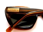 This pair of Authentic Adrienne Vittadini 80's Cat Eye style Sunglasses are in very good condition. Pre-owned very well cared for. There is some minor wear on the left lens from resting on its face, does not interfere with vision. Cool Glasses and very comfortable to wear. Very well made. Brass logo "VITTADINI" on the left temple. Inside frame reads: Adrienne Vittadini Made in Italy~~~~~AV 158 105-1-135 frame measuring across the front: 150 mm ~~~ lenses 53 mm wide, 39 mm vertical, Please contact us with any questions. Thank You!