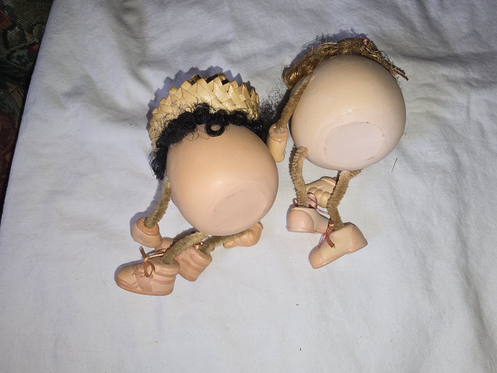 The Egghead figurine is a original, handmade piece and belongs to the Figures collection. It is a perfect addition for collectors of decorative collectibles, sculptures, and figurines. The exact country/region of manufacture is unknown, but the eggheads are sure to bring a smile to anyone's face.