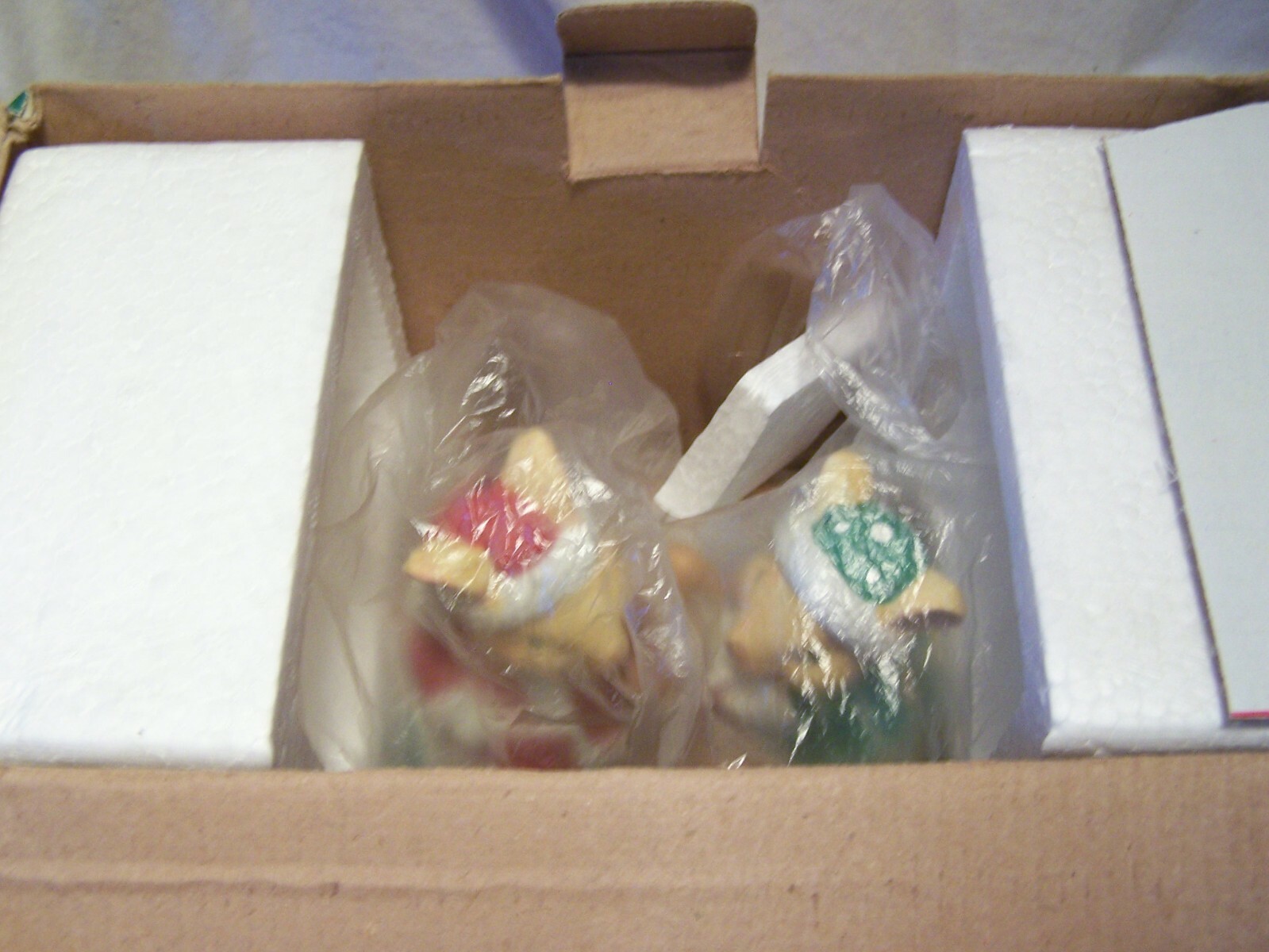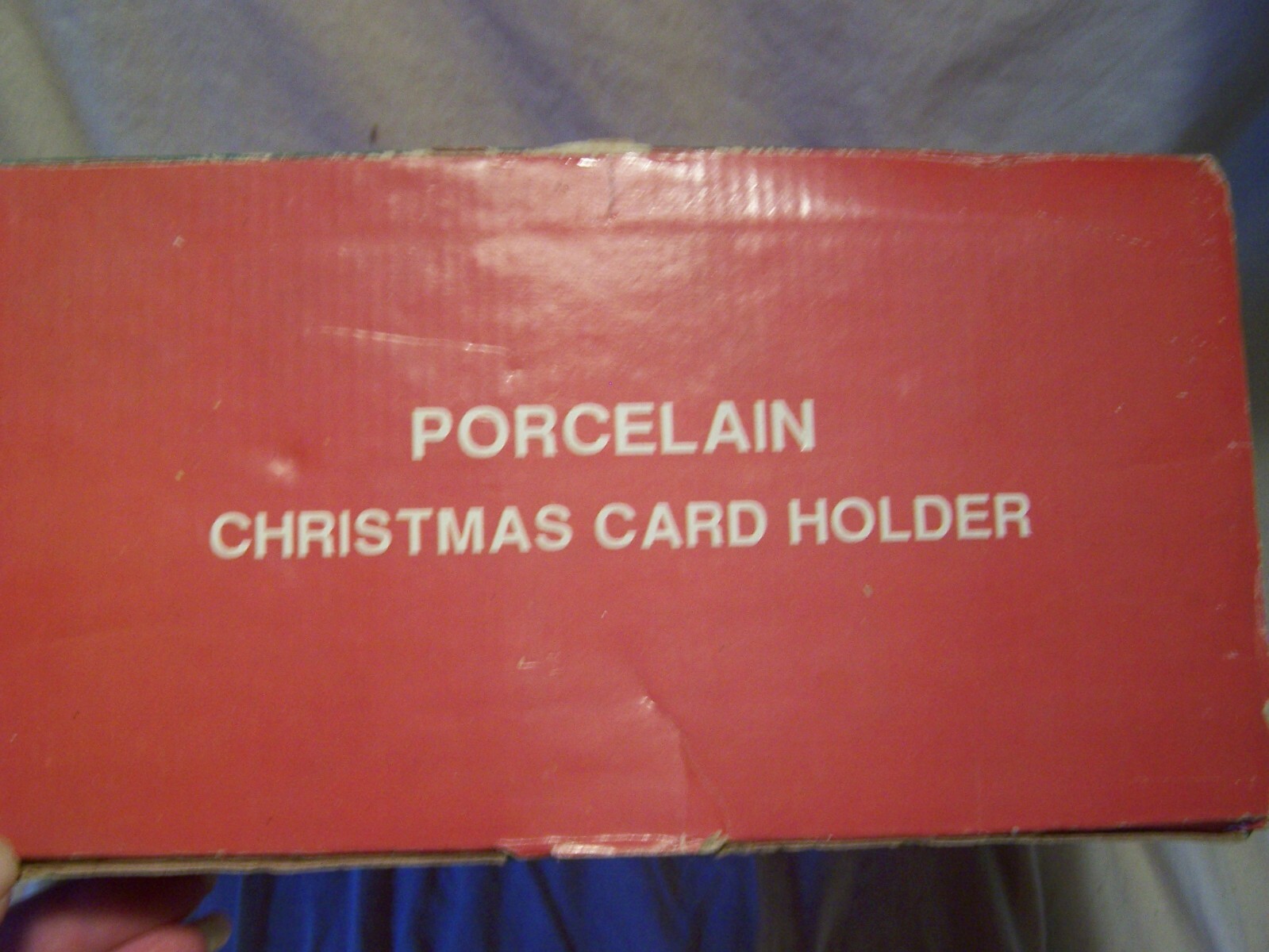 Cute decorative christmas item. Holds christmas cards. Estate sale find, in original box. Little dirty from storage. No chips or cracks. Box shows shelf wear. Vintage. Box weighs 2 1/2 pounds un packaged. Thanks for looking!